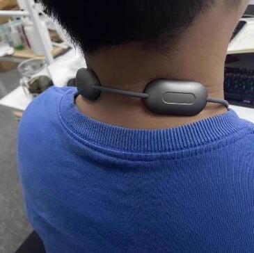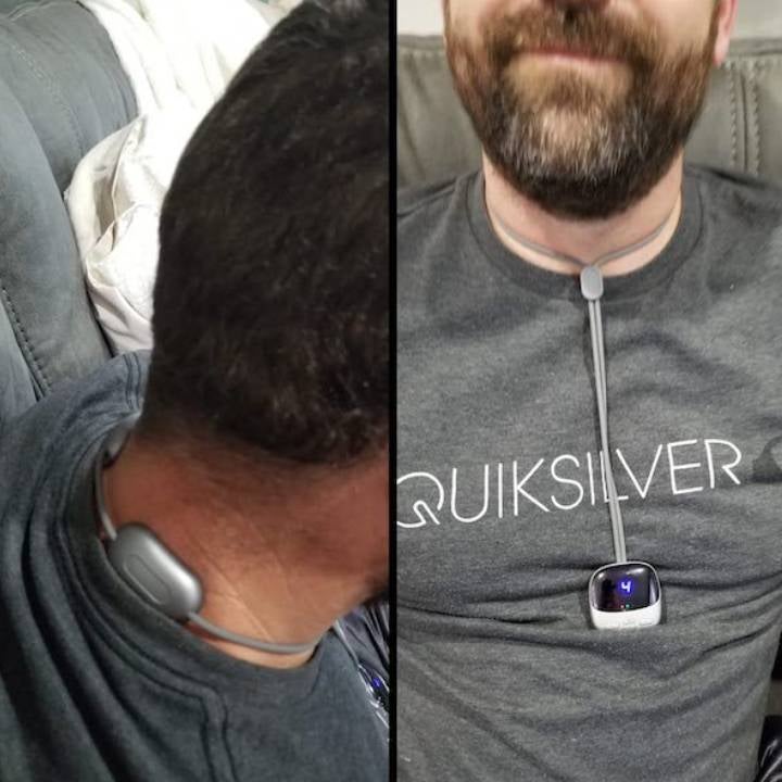 Mettez le Collier Masseur de Nuque EMS Postur sur votre cou pendant 15 minutes et profitez du soulagement de la douleur.