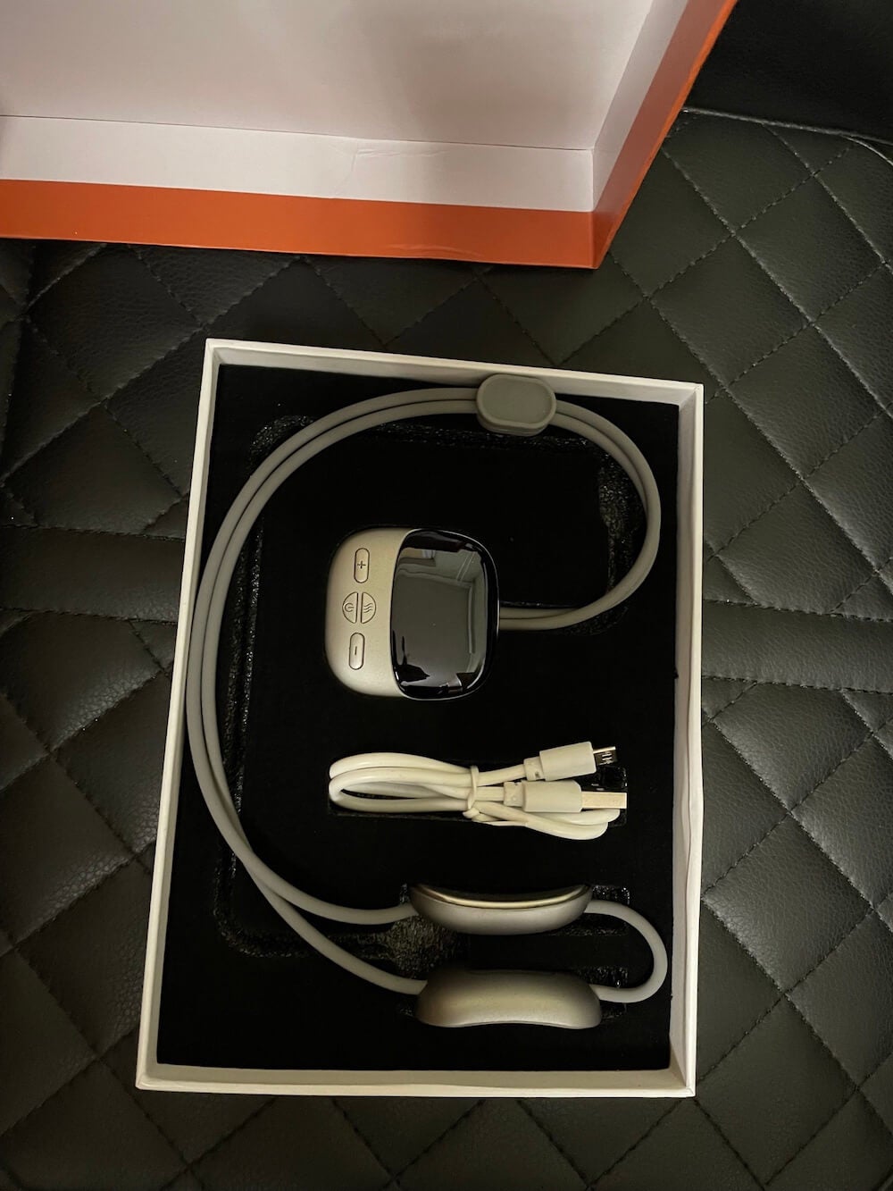Déballez et sortez le masseur, le câble USB et le manuel d'utilisation.