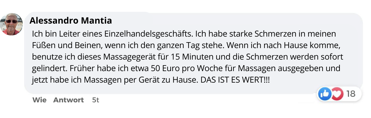 Ich leide manchval sehr stark unter Plantarfasziite. Dieses Massagegerät ist wirklich hilfreich. Die Schmerzen sinden völlig verschwunden. Jitzt Brauche ich Keine Schmerztabletten mehr! Erzegovina Dank dafür!